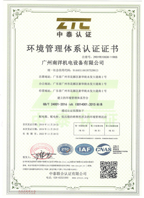 环境管理体系认证证书