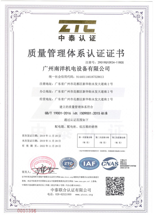 质量管理体系认证证书